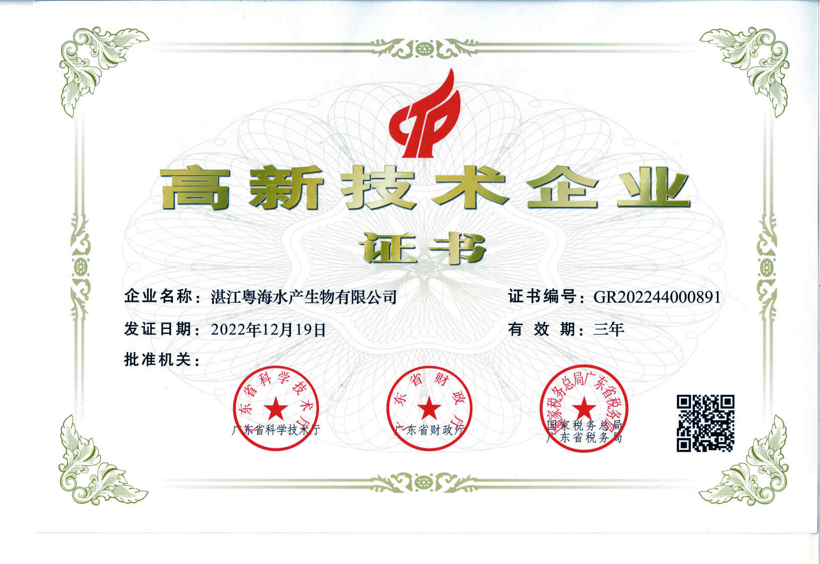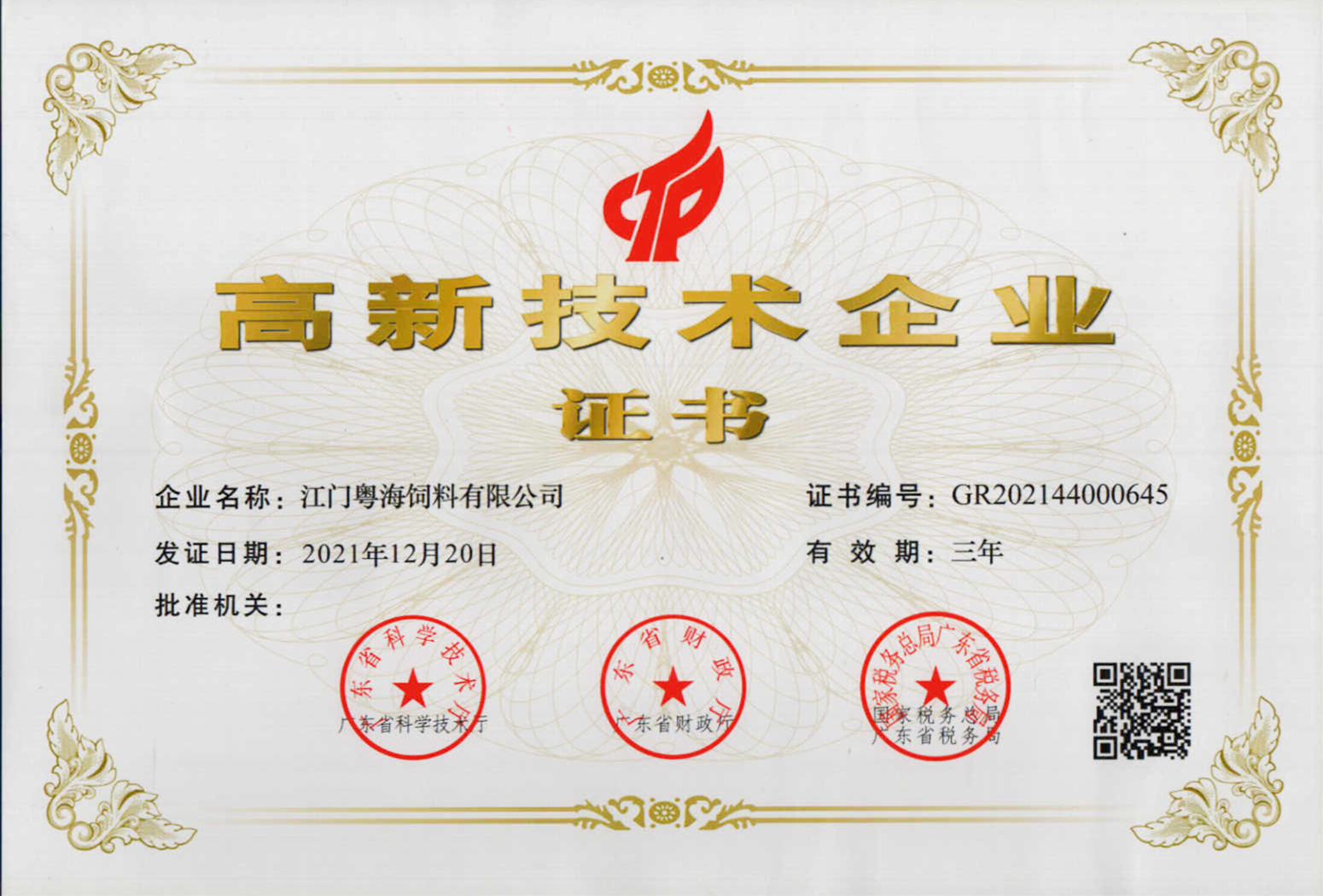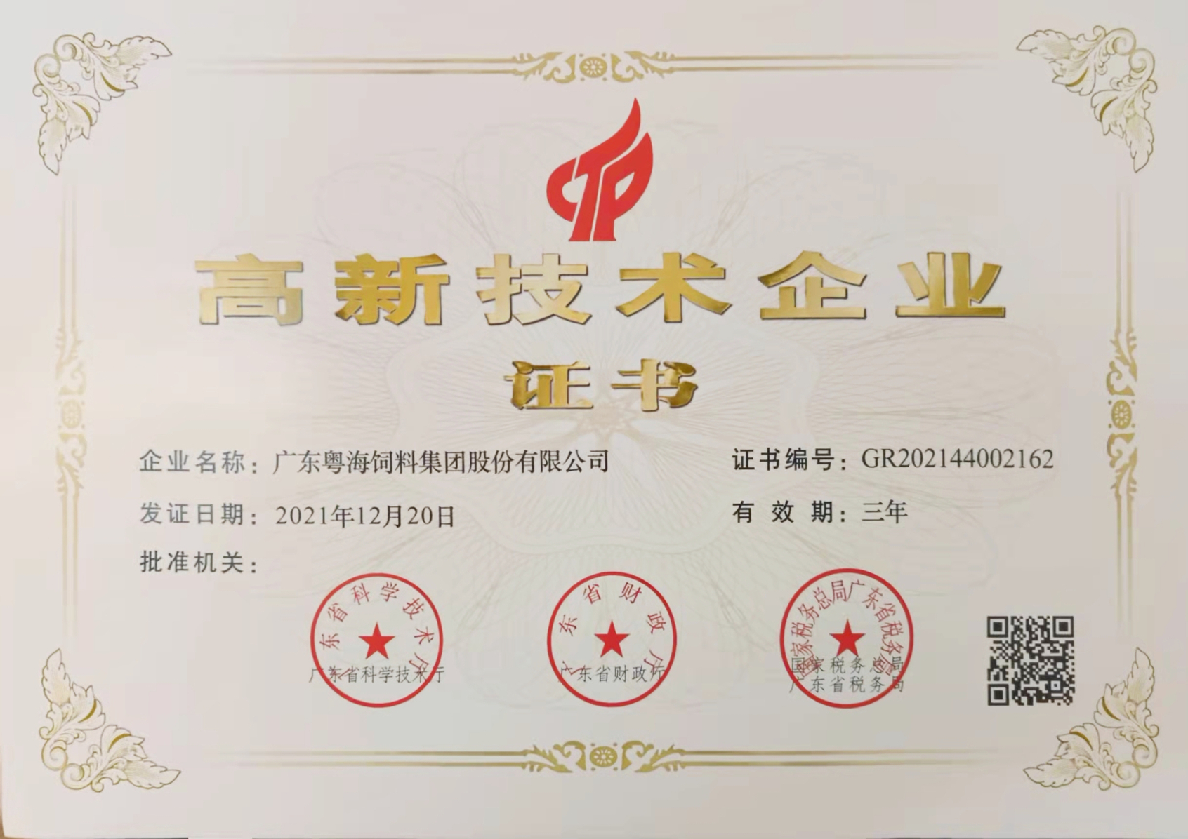 高新技术企业证书-广东JIUYOU九游体育(中国区)官方网站
